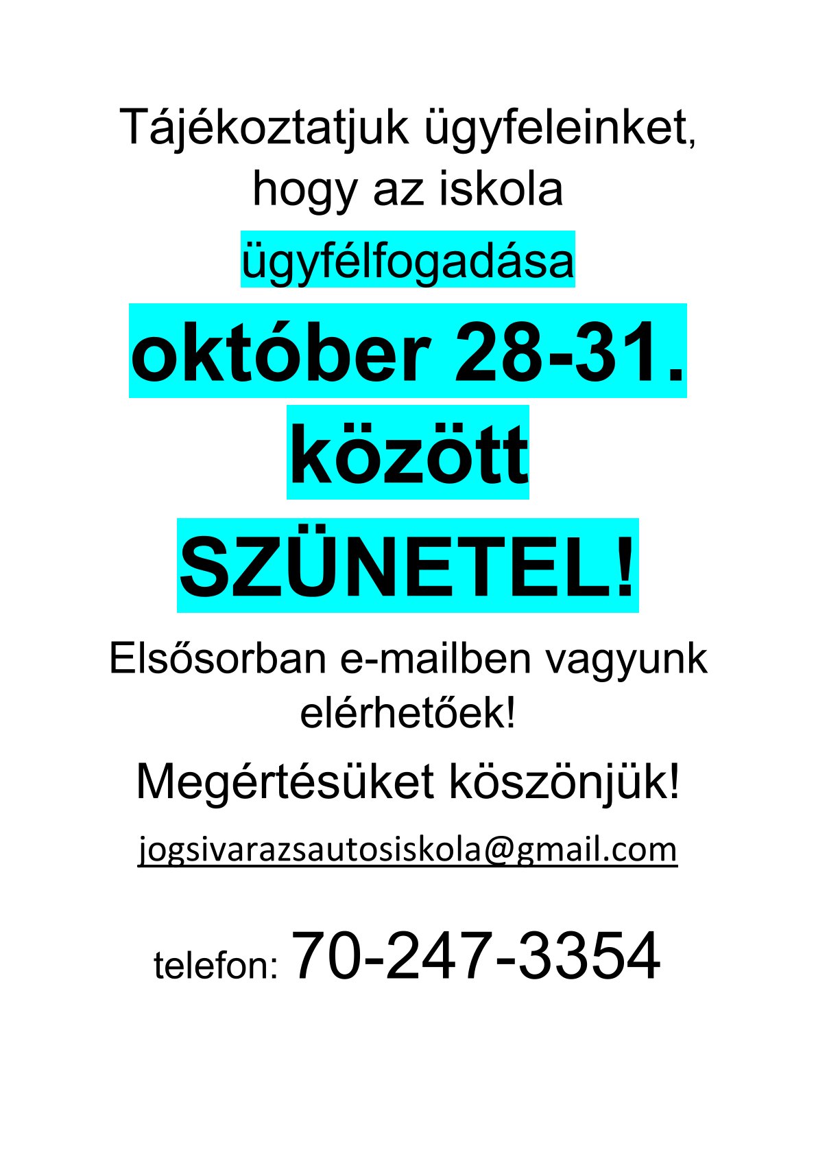 Tanfolyamra jelentkezés és az elméleti képzés Dunakeszin, Szent István u. 28. (volt Okmányirodával szemben, zöld saroképület) szám alatti irodában zajlik. Jelentkezhet on-line is, a Kapcsolat menüpont alatt vagy az iskola email címére küldött üzenetben!